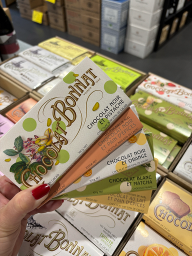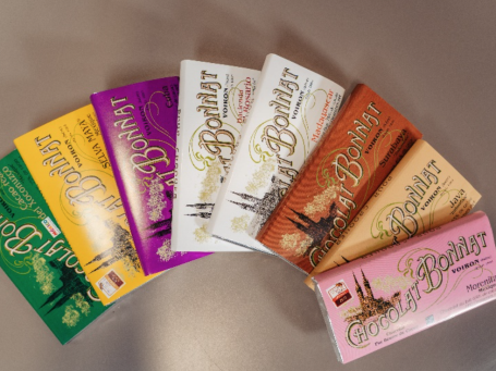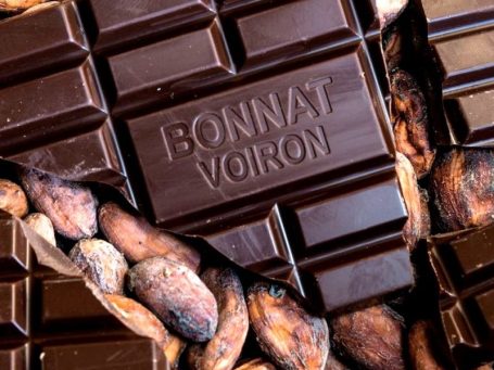 Retrouvez à Vinobulles les célèbres tablettes de la Maison Bonnat, grand nom du chocolat installé à Voiron depuis 1884.